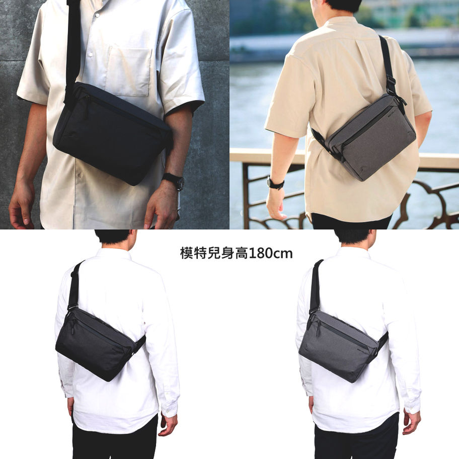 「Sling4 G05」是一款單肩帶式相機包,可使用背帶上的自動彈簧凸輪即時調整背帶的長度。簡約的設計可將單鏡頭相機和可互換鏡頭有效地存放在緊湊的機身中。它的尺寸非常適合在城裡散步時進行休閒攝影可以容納 9 吋平板電腦。